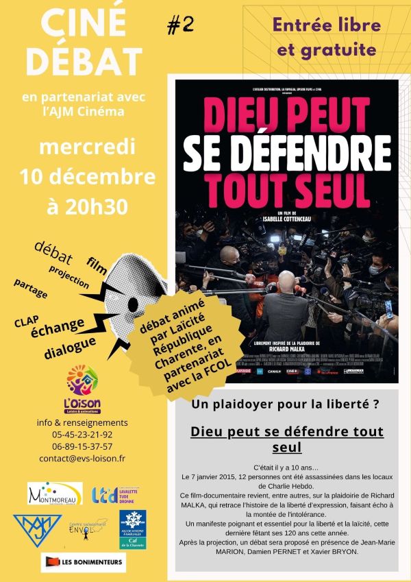 Cette soirée a lieu dans le cadre d’un partenariat avec l’espace de vie sociale L’OISON et l’association Laïcité République Charente.