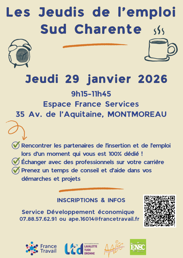 Au sein de l’Espace France Services de Montmoreau, de 9h15 à 11h45.