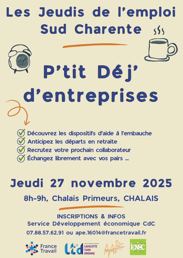 Entrepreneurs, retrouvez-nous de bon matin, accompagner des partenaires de l’insertion et de l’emploi pour parler recrutement, retraite, et aides en tout genre !