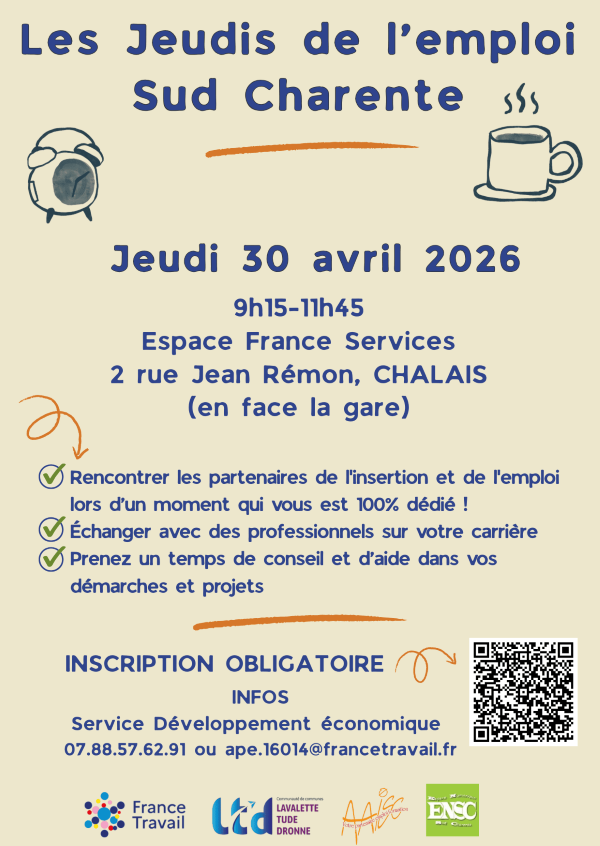 Au sein de l’Espace France Services de Chalais, de 9h15 à 11h45.